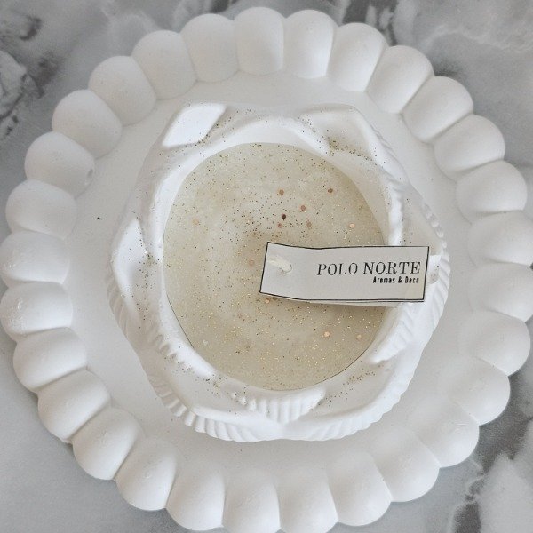 Vela aromática natural de soja en cuenco de loto de yeso.